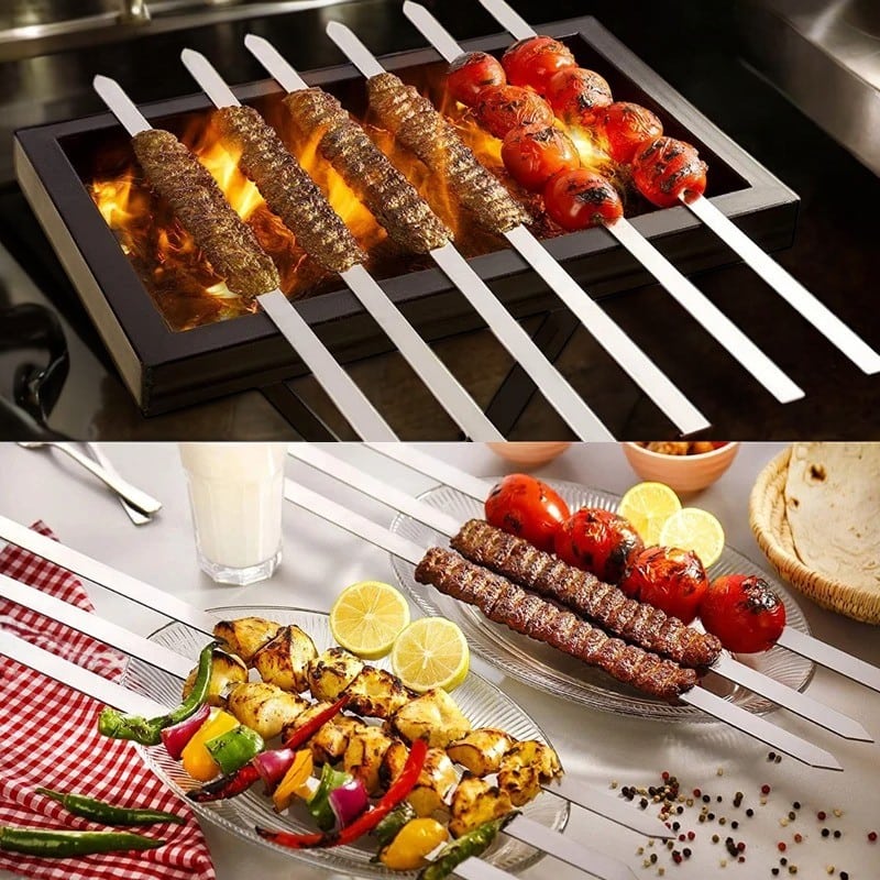 5 שיפודי מתכת עבים ועמידים במיוחד, עשויים נירוסטה איכותית שאינה מחלידה. מושלמים לשימוש אינטנסיבי במנגלים גדולים ובאירועי גריל.